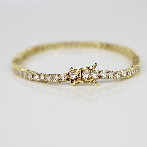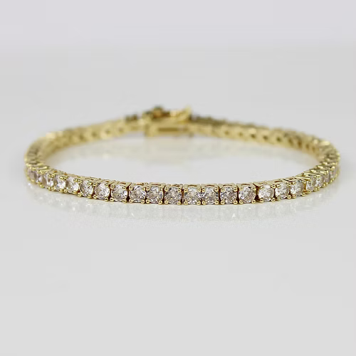YELLOW GOLD FINISH Round Cut Classic Crated Diamond bracelet | Wedding, Engagement, Anniversary, Birthday, Gift