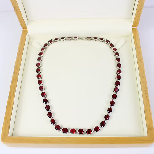 WHITE GOLD FINISH Red Ruby Oval Cut Crown Claw Necklace | Wedding, Engagement, Birthday, Party, Gift