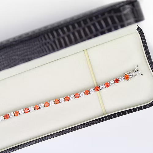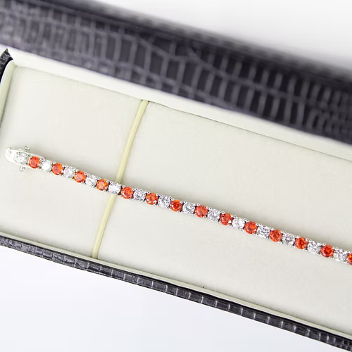 WHITE GOLD FINISH Orange Citrine Round Cut Alternating Created Diamond Bracelet | Wedding, Engagement, Party, Birthday, Gift