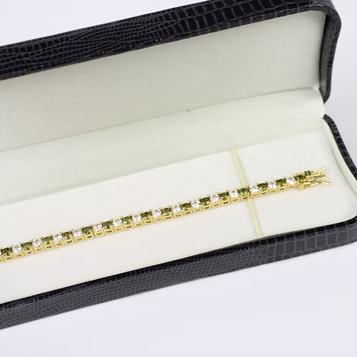YELLOW GOLD FINISH Green Peridot Round Cut Alternating Created Diamond Bracelet | Wedding, Engagement, Anniversary, Birthday, Party, Gift