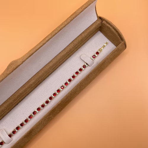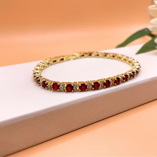 YELLOW GOLD FINISH Created Diamond Red Ruby Round Cut Tennis Bracelet